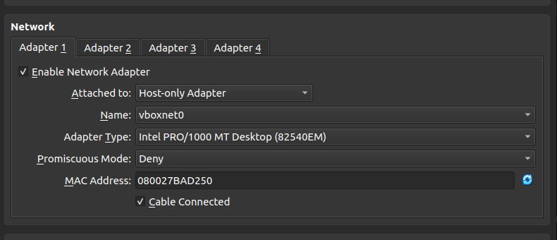 this will create a network for VirtualBox that will allow you to used the host only adapter.